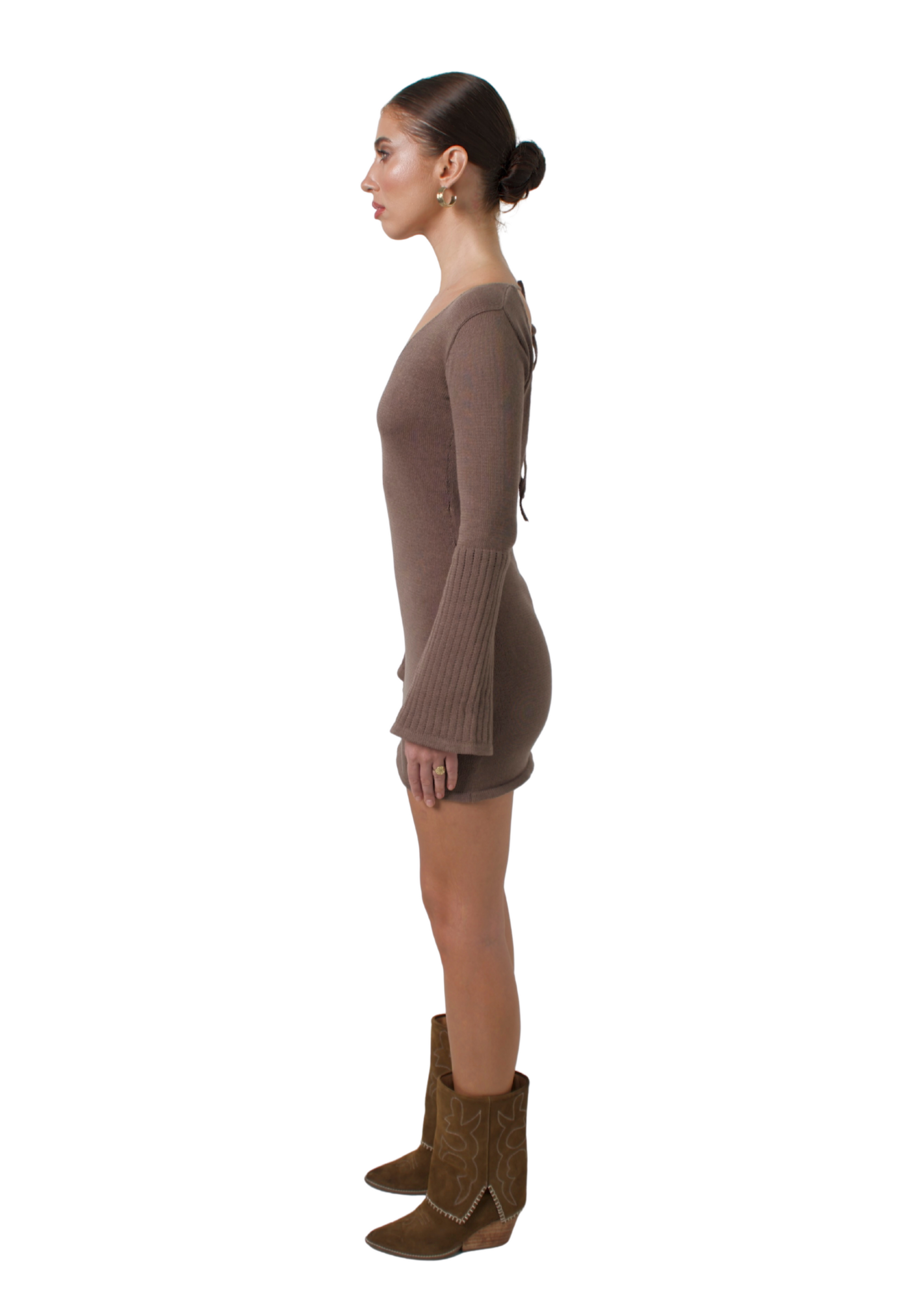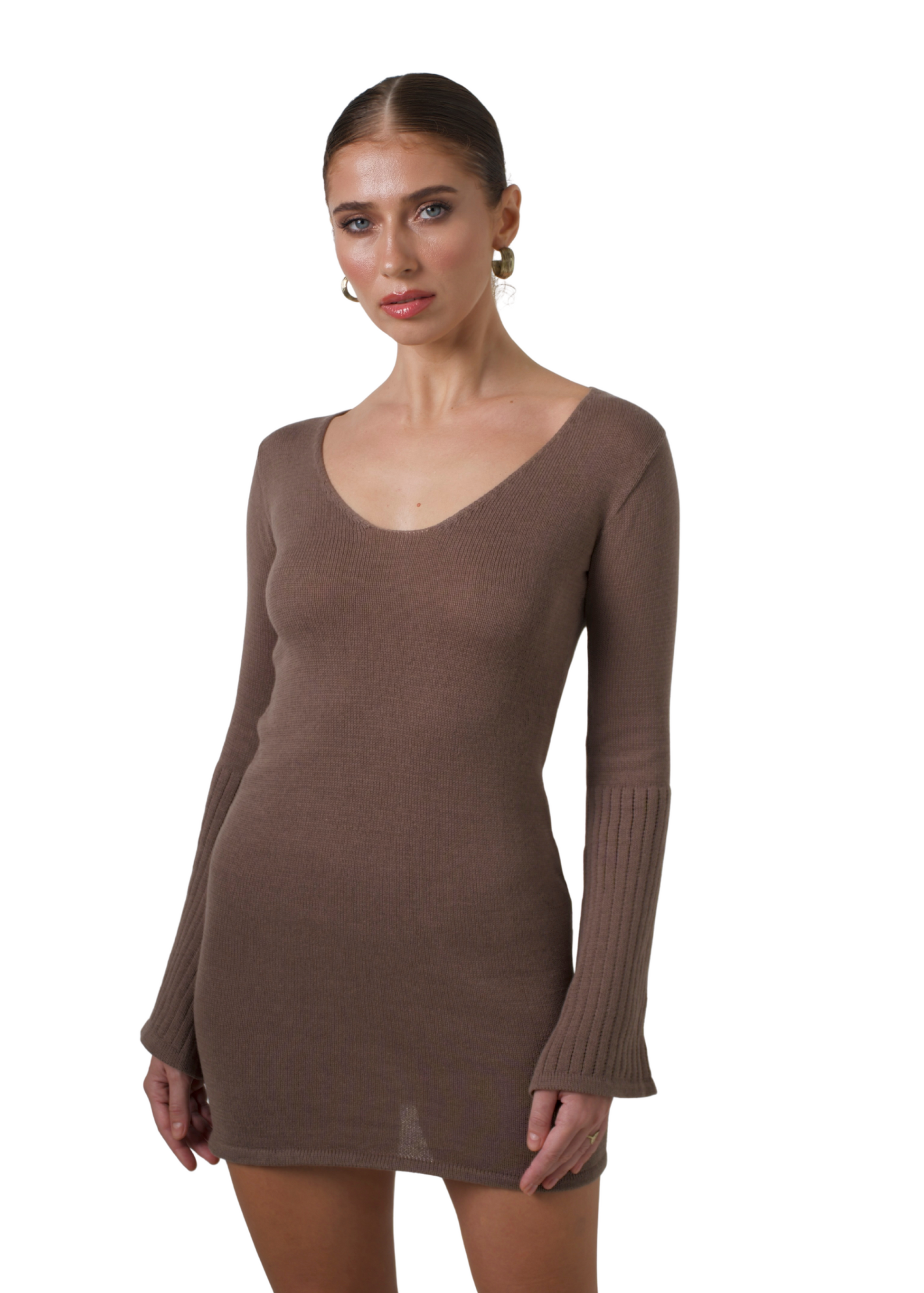 Designed in a mocha shade, the 'Lua' combines elegance and versatility with a fabric that blends jersey and rib. Its warm, rich tone gives it a wintery feel while remaining versatile enough to wear year-round. Made from 100% organic cotton.